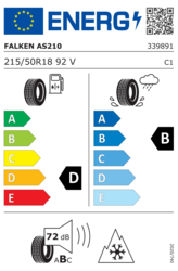 Grâce à la technologie "nanodesign 4D", le Euroall Season AS210 215/50 R18 92V M+S 3PMSF de Falken est plus performant de 10% par rapport à son prédécesseur (la version AS200). La revue AUTOBILD ALLRAD et le magazine spécialisé « Gute Fart » recommandent ce pneu pour ses qualités.